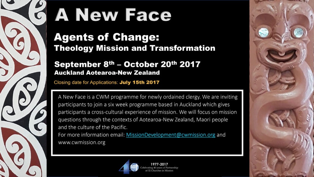 A New Face is a CWM programme for newly ordained clergy. It is a full-time residential immersion programme that spans six weeks and is designed to give participants a cross-cultural experience of mission. The programme is structured to be contextual and experiential and is available for up to 8 participants. In additional to learning through the theological college, participants explore mission as transformation in their various placement settings.  The College will give participants orientation to mission in the contexts of Aotearoa-New Zealand, Maori people and the culture of the Pacific.  These include New Zealand and Island churches and community projects. Through the church and community projects participants will be exposed to issues like mission in the contexts of changing cultures, urban poverty, migration, homelessness, race and gender justice, sex work, climate change and the arts, as well as share insights into ministry and mission in congregational life.