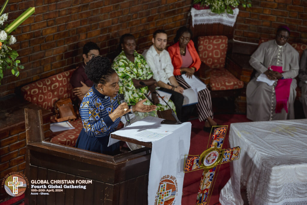 Council for World Mission (CWM) Moderator Rt Rev. Lydia Neshangwe preached during the opening worship service of the Global Christian Forum Fourth Global Gathering in Accra Ridge Church, Ghana, Africa on 16 April.