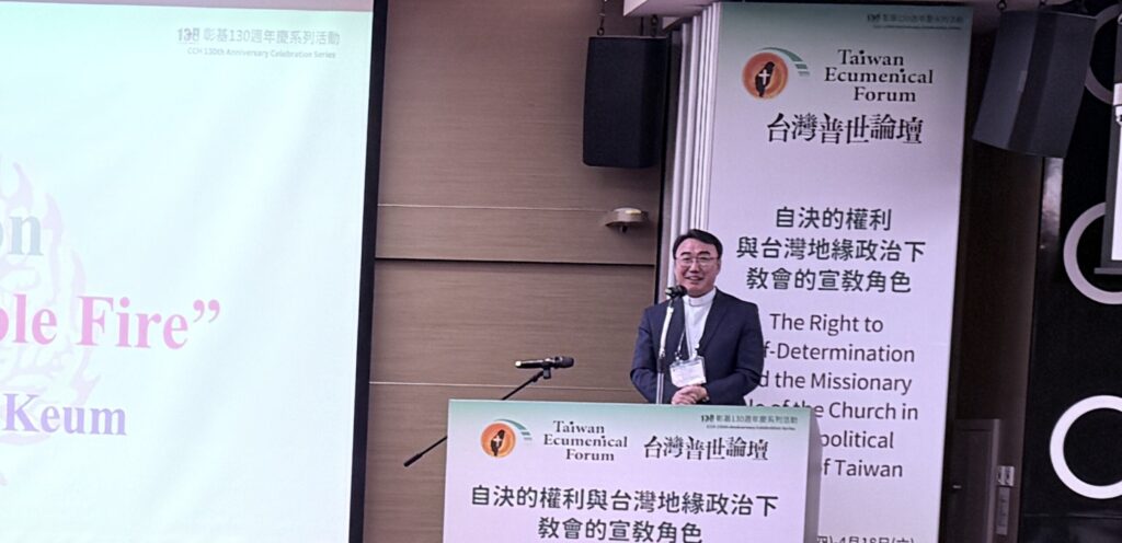 In his keynote speech, “Divine Sovereignty and the Right to Self-Determination,” Rev. Dr Huang Po-Ho, director of the Academy for Contextual Theologies in Taiwan, argued that self-determination must be understood not only as a political issue but also as a deeply theological concern rooted in God’s sovereignty and human dignity.
